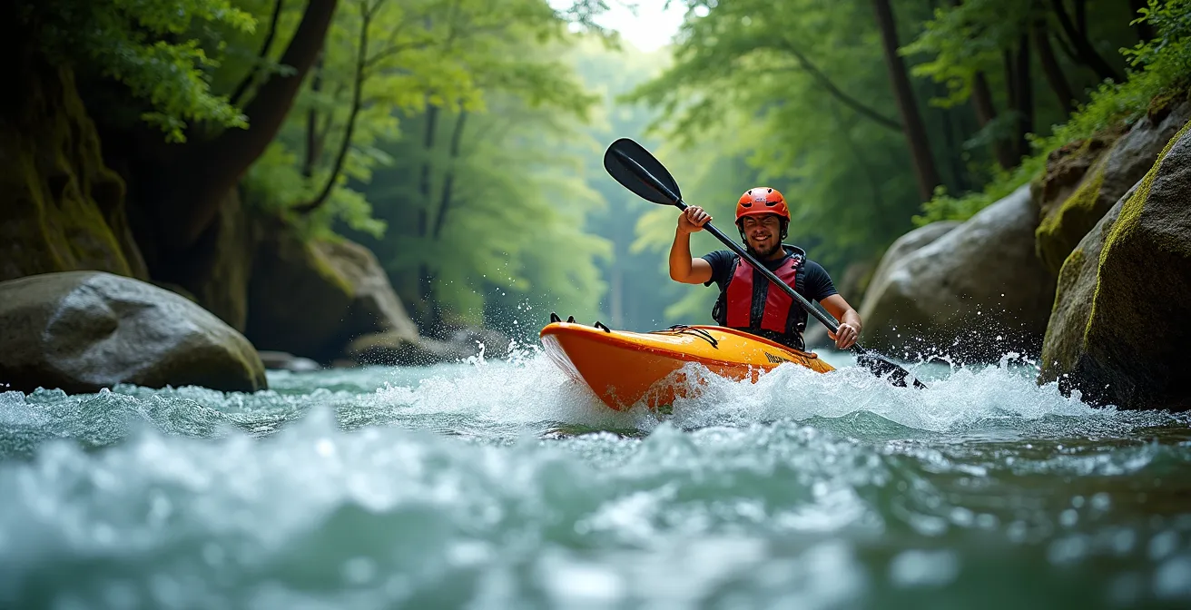 L’image d’un kayak dévalant une cascade d’eau bouillonnante ou d’un raft manœuvrant entre des rochers acérés a durablement ancré les sports d’eau vive dans la catégorie des activités extrêmes. Pour beaucoup, la rivière est une force chaotique, une puissance brute contre laquelle il faudrait lutter avec force et courage. Cette perception, alimentée par des vidéos spectaculaires, masque une réalité bien plus subtile et fascinante. La plupart des guides et des passionnés vous le diront : la clé n’est pas dans la puissance des bras, mais dans la finesse de l’observation.